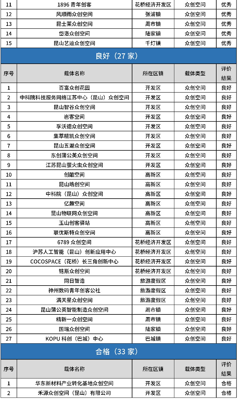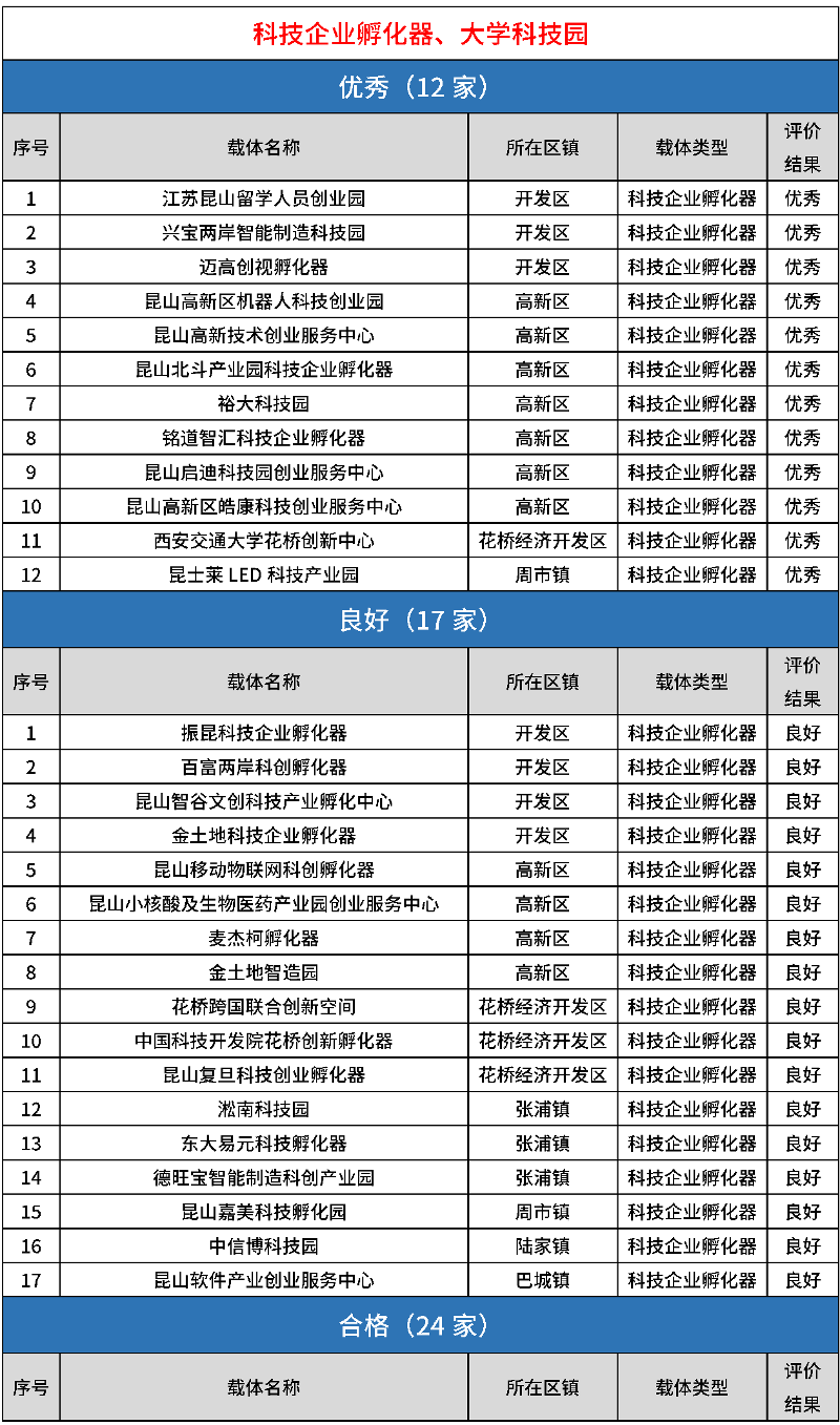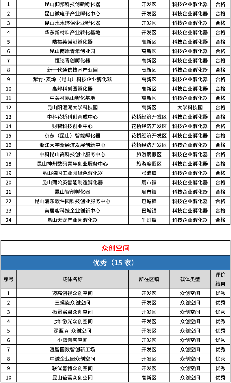 2022年昆山市科技創(chuàng)業(yè)孵化載體績(jī)效評(píng)價(jià)結(jié)果公示名單
