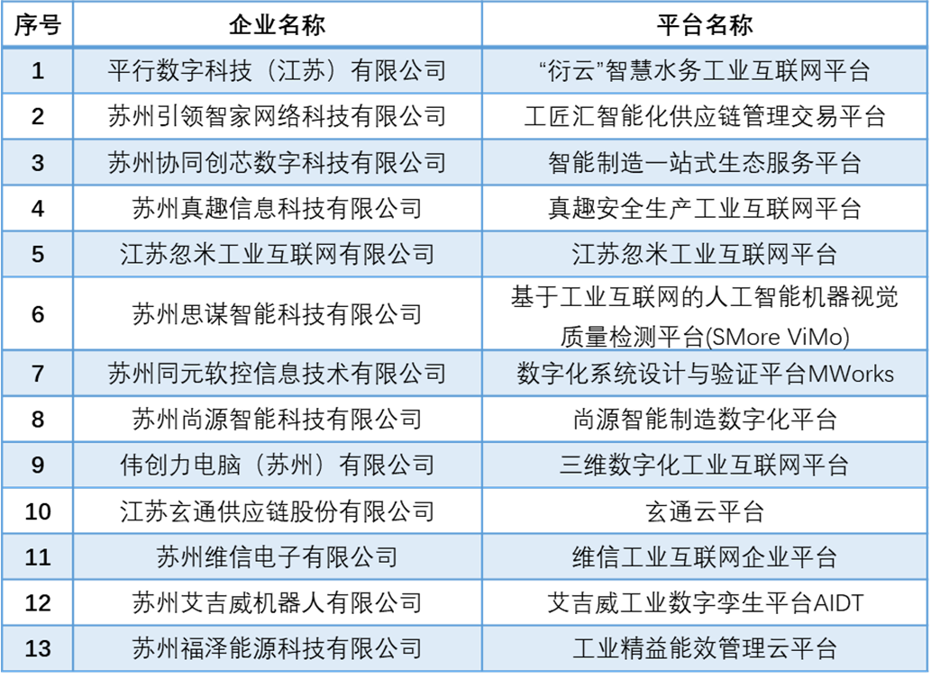 蘇州市第五批工業(yè)互聯(lián)網(wǎng)重點(diǎn)平臺(tái)名單